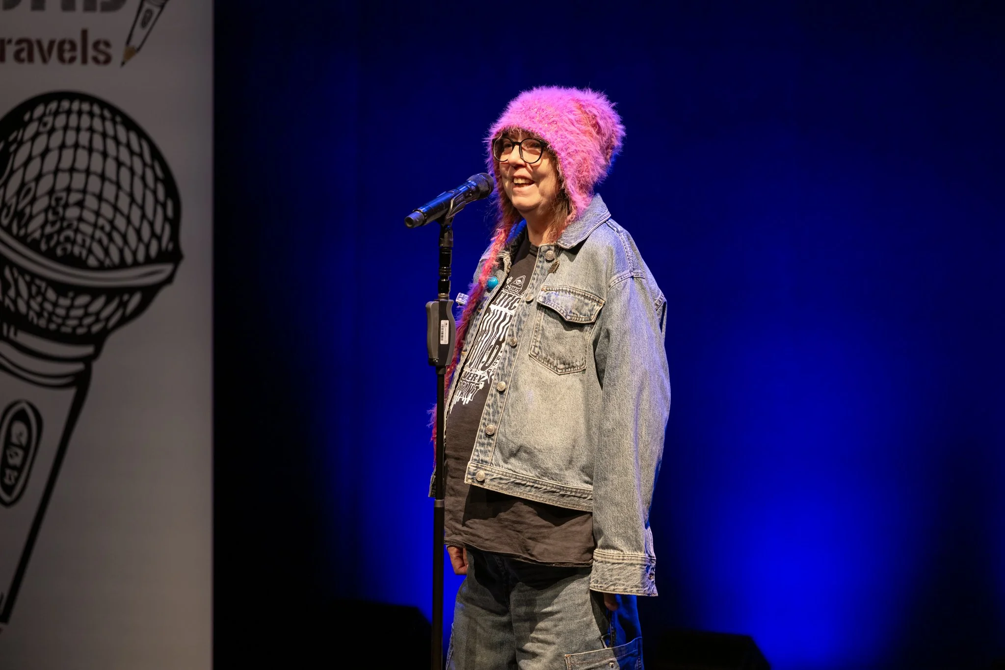 Jo Giles is the 2024 Australian Poetry Slam Champion. On 13 October 2024, Jo won the National Final with a deeply personal story about the painful and humorous sides of undergoing a lung transplant. They shared their journey living with cystic fibrosis and other illnesses on the Sydney Opera House stage, captivating the audience with a powerful performance that showcased their dry wit and a no-holds-barred approach to storytelling.